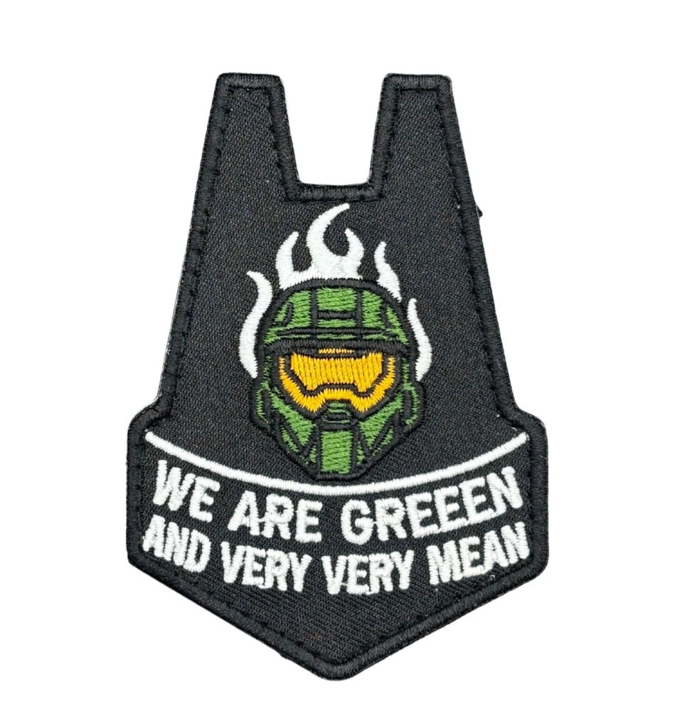Haloo We Are Green and Very Mean Hook Fastener Patch 3.5x2.5 Inch